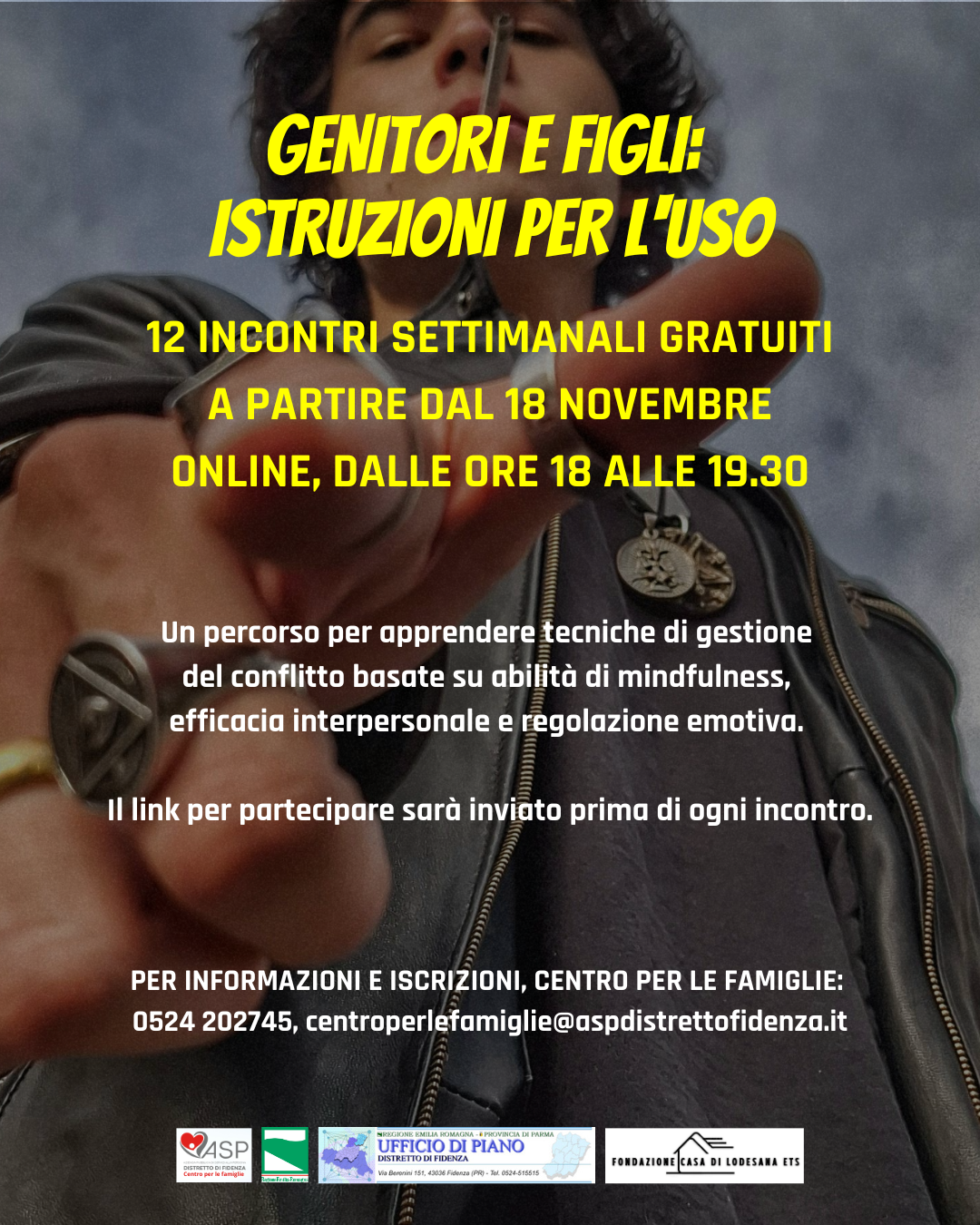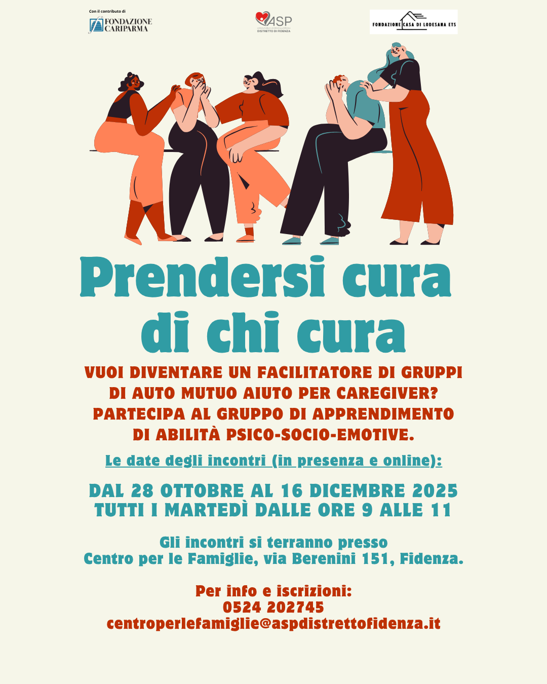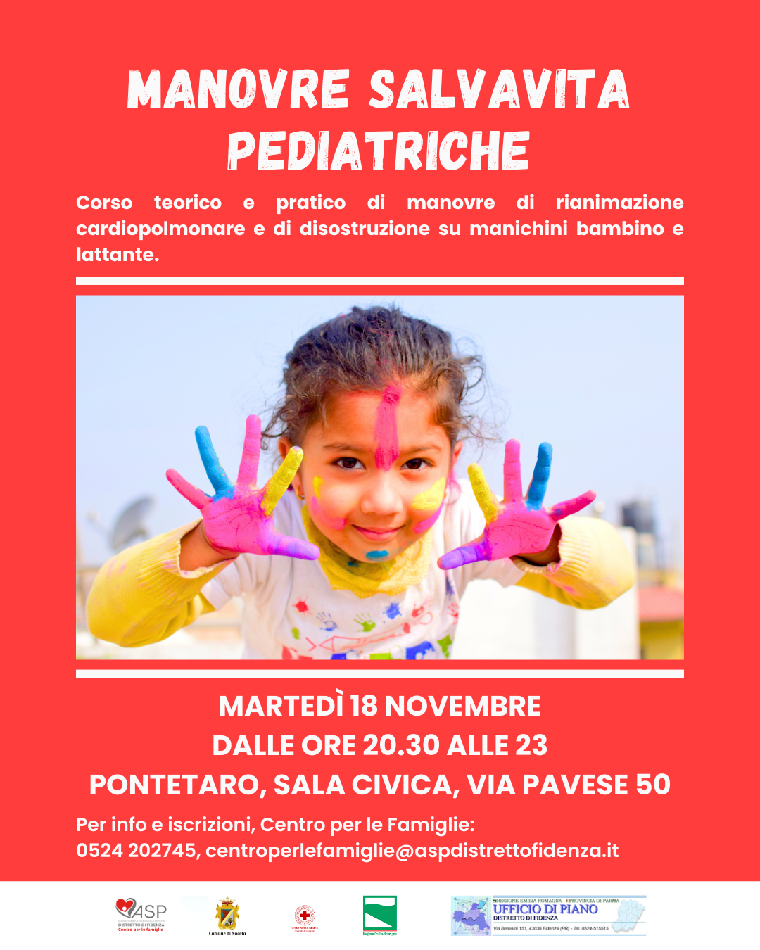 Per partecipare è necessario prenotarsi contattando il Centro per le Famiglie al numero 0524 202745, oppure scrivendo una mail all’indirizzo centroperlefamiglie@aspdistrettofidenza.it.