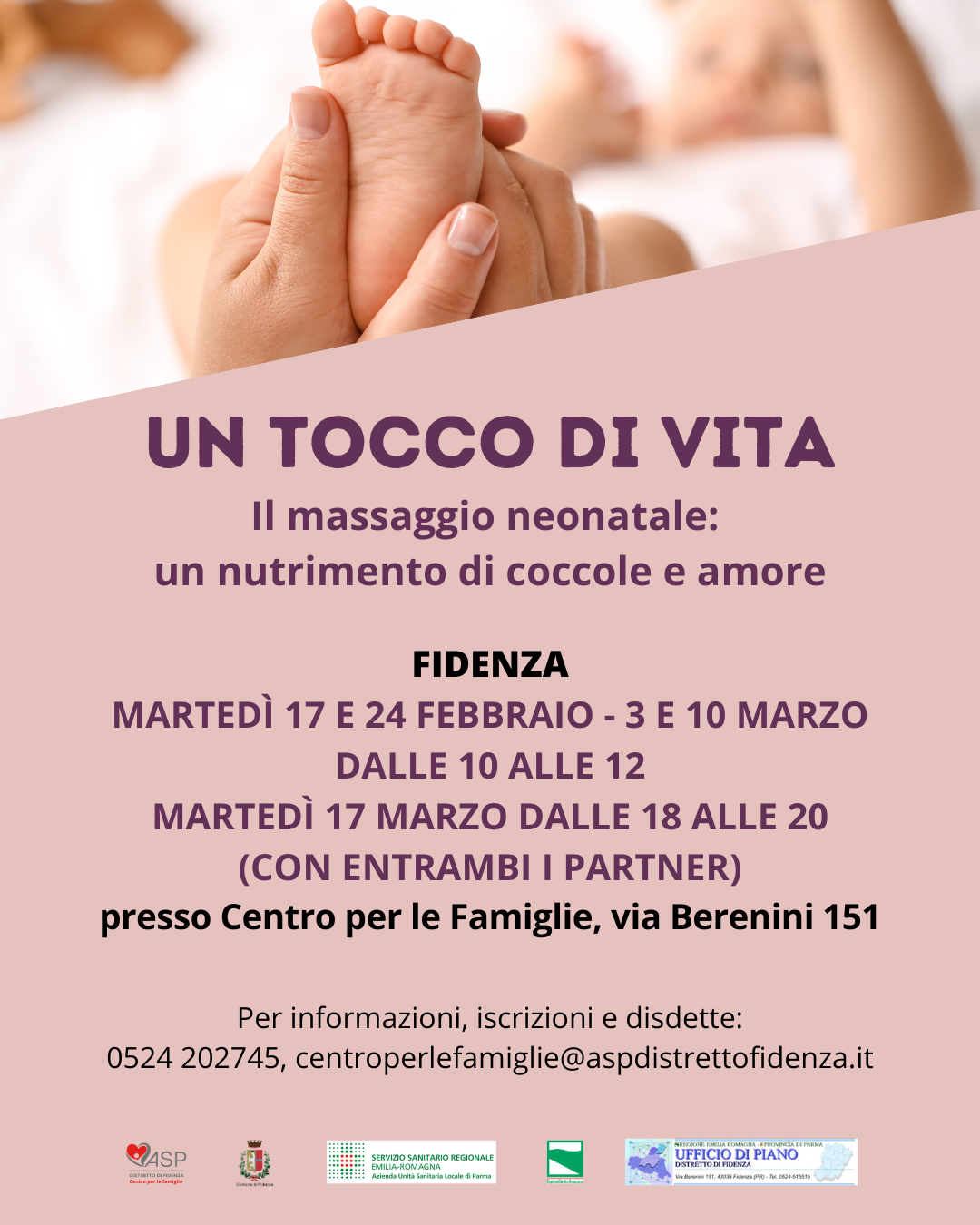 Partirà il prossimo 17 ottobre "Un tocco di vita. Il massaggio neonatale: un nutrimento di coccole e amore", il ciclo di incontri gratuiti dove scopriremo insieme l'importanza del tocco nell'ascoltare e comunicare. Uno strumento che puo` accrescere il benessere del bambino e favorire il legame con mamma e papa`.